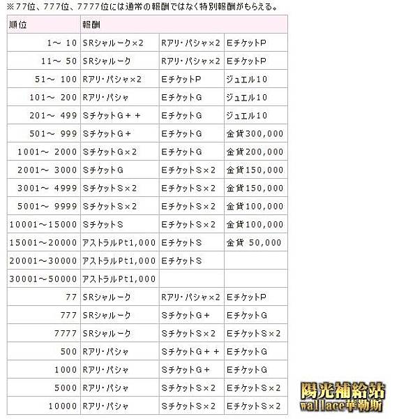 綜合排名77、777、7777名,給與特別獎品。