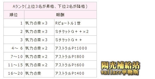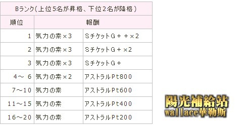 隔日14:00核算後,前3名升至S區,後2名降至B區。(2015-07-21新增)
