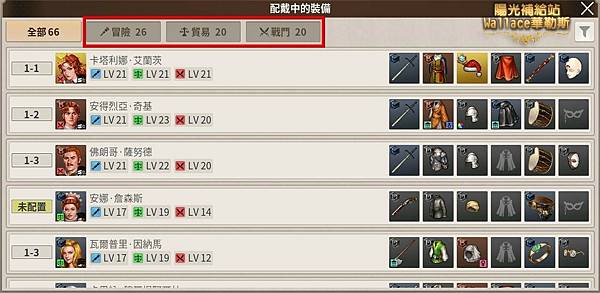 左下角有「配載中的裝備」,可以快速分配裝備。