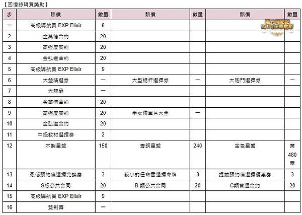 - 完成所有月度任務:A級公共契約5>40,S級公共契約10增加