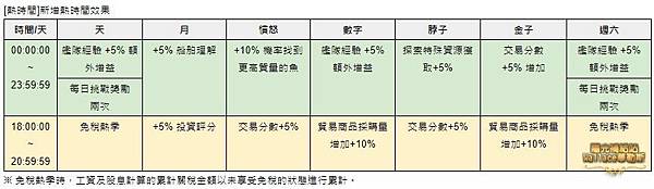 - 專屬附加效果:專屬產品、專屬貿易產品、專屬船舶